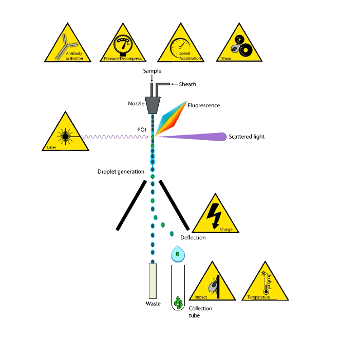 Sin embargo, el procesamiento previo de la muestra (preparación, tinción, temperatura, etc.) junto con algunos parámetros de la separación (presión, descompresión/expansión, láser, cargas electroestáticas, etc.) someten a las células a numerosas fuerzas mecánicas que originan un estrés en las células aisladas.