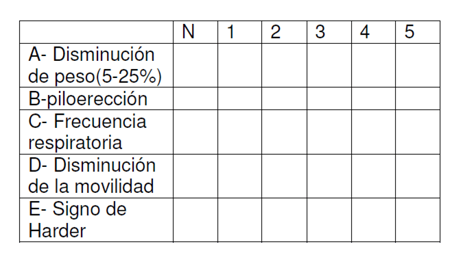 La evaluación de estos signos se hará siempre por dos personas, un representante del laboratorio de investigación y por el especialista en bienestar animal del hospital.