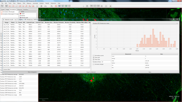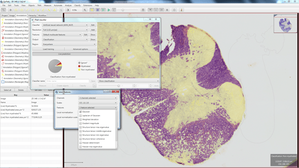 El programa cuenta con potentes herramientas de anotación y visualización, algoritmos para la detección de tejido y células, machine learning interactivo para la clasificación de píxeles y objetos y es compatible con distintas herramientas de código abierto (como ImageJ, por ejemplo), a la vez que puede trabajar con una gran variedad de formatos de imagen.