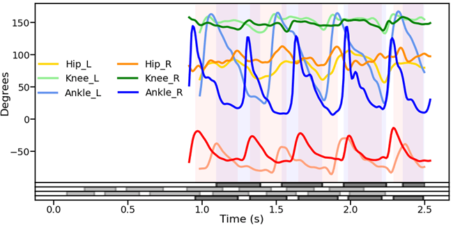 - A partir de los datos de ángulos articulares y eventos analiza la locomoción del animal.
