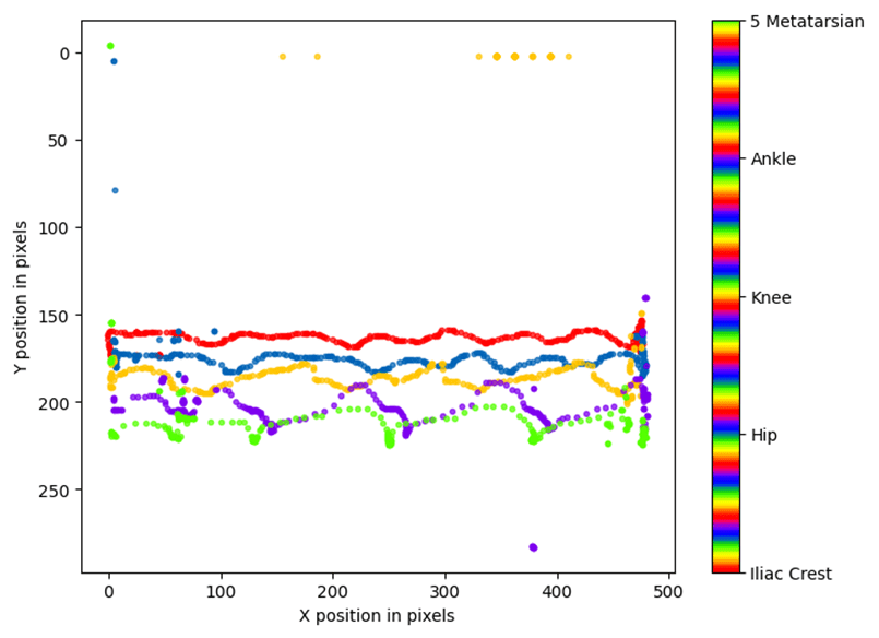 La observación del comportamiento de los animales durante los experimentos es fundamental en muchas actividades científicas, como la biomecánica, genética, etología y neurociencia. Capturar las posiciones espaciales de cada uno de los miembros del animal durante el desarrollo de una actividad sin utilizar marcadores es todo un reto. Recientemente se ha presentado una herramienta informática de última generación de código abierto llamada DeepLabCutTM(DLC) basada en algoritmos de estimación de la postura, que permite al usuario entrenar una red neuronal profunda con datos etiquetados por el usuario, para rastrear con precisión las puntos de la imagen capturada previamente definidos.